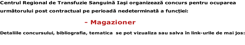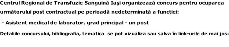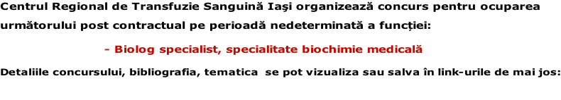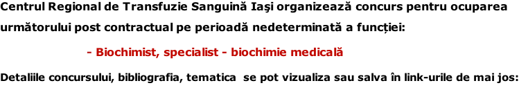 Centrul de Transfuzie Sanguină Iași anunță suspendarea concursului pentru ocuparea postului de biochimist specialist -