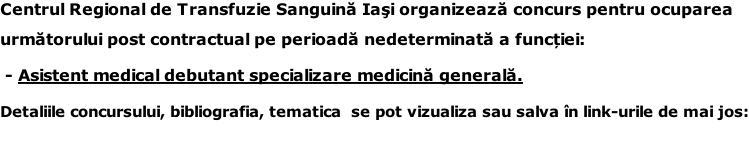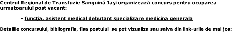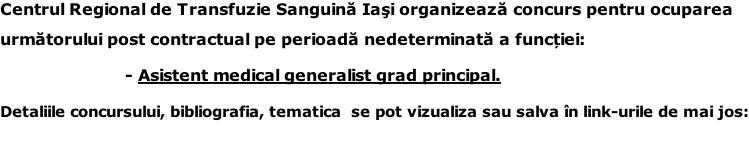 Centrul Regional de Transfuzie Sanguină Iași organizează un examen de promovare în grad profesional.
